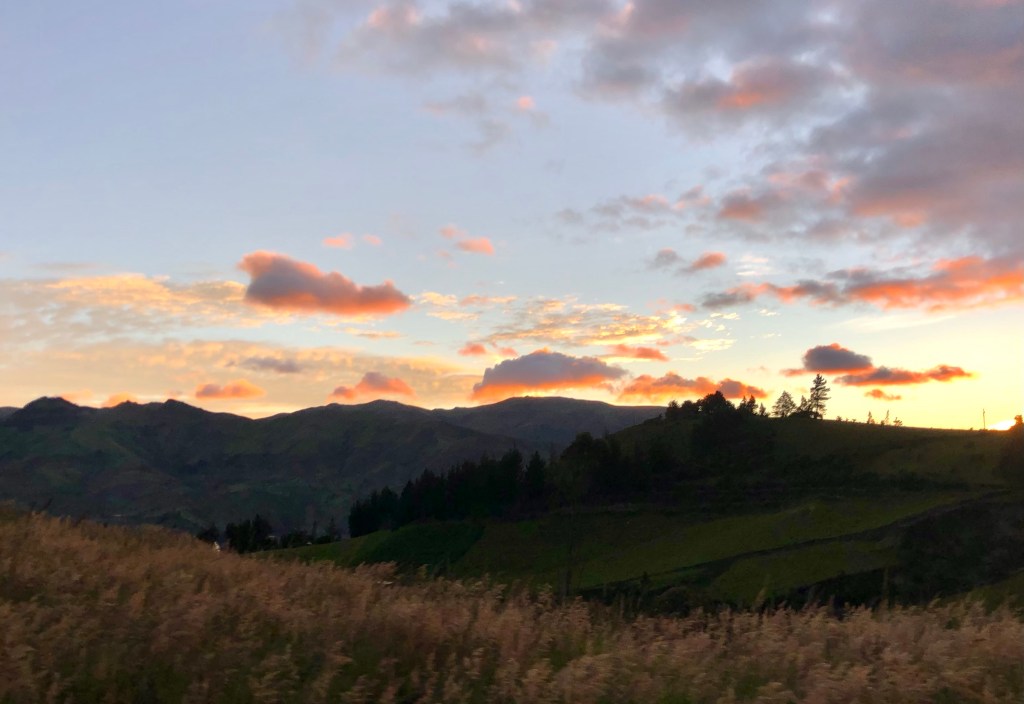 Eventually we have to face up to our destiny. The hike up the cliffs is every bit as lung-busting as we feared. Every hundred meters we halt and pant and suck on one of the old Lifesaver sweets that I have found in my jacket pocket. Around one bend in the path we come across a toothless old indigenous lady brewing tea. She commutes here by bus from a far away town, she tells us, and walks down the mountain to this lonely path every day – with all her cooking equipment on her back – to sell refreshments to passing hikers. This is how Ecuador works. We bought a couple of cups of coca leaf brew with my last dollar, and thus fortified we find strength to make the summit.