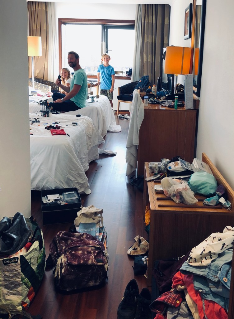I see our driver’s glance sliding off the piles of bags and boards that are strewn around us. I look at our kids, all blonde floppy hair, white teeth, shiny eyes, accessorised with sunglasses, necklaces and surf t-shirts. We joke sometimes about how we have gone native after months on the road, but in reality we are very far from native.